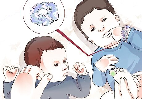 Use a "scrunchie" or bracelet. You can purchase an elastic scrunchie or some type of small bracelet. Before leaving the hospital, put the scrunchie around one baby's wrist or ankle. This can help you remember which baby is which throughout the day.