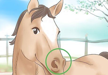 Look to see if their nostrils are relaxed. A happy horse's nostrils will look relaxed. They'll also appear soft and round. Horses that are unhappy may have tense nostrils that appear thin and rigid.
