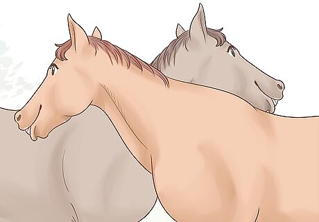 Note if horses are grooming each other. Observe how your horses interact together. If two or more horses are engaged in grooming behavior, they're likely relaxed and happy. Ultimately, grooming is a behavior horses will do when they are at ease and want to bond with others.