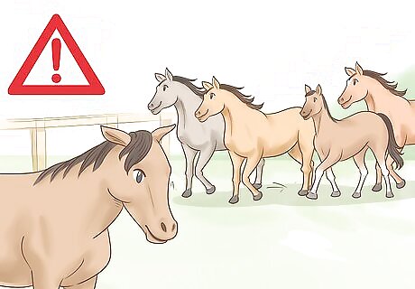 Watch your horse's herd behavior. Horses are herd animals and like to be near other horses – usually within 5 to 10 feet (1.5 to 3.0 m). Horses that are unhappy will be off by themselves, intentionally isolating themselves from the herd.