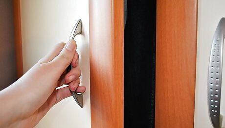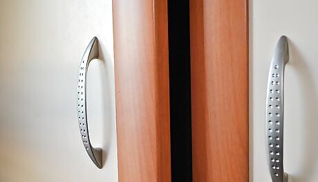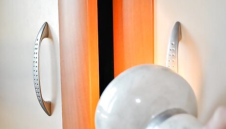 Slowly open the closet door, having a good grip on the handle and using your foot to prevent the door from opening far.