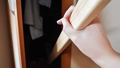 Repeat step 7 until the door is fully open. Then, using a hand (or pole), poke your clothes or any hiding spaces gently to check for people. If you find none, congratulations, your closet is clear.