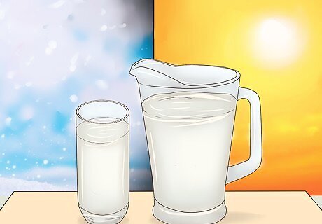 Up your fluid intake during hot or cold weather. When it's extremely hot or cold outside, this can cause dehydration. Make an effort to up your water intake when it's very cold or hot out. This can help prevent dehydration in the future. Notice physical symptoms, such as dry skin or hands, during hot or cold weather. If you begin displaying symptoms of dehydration, start drinking water to replenish lost fluids.