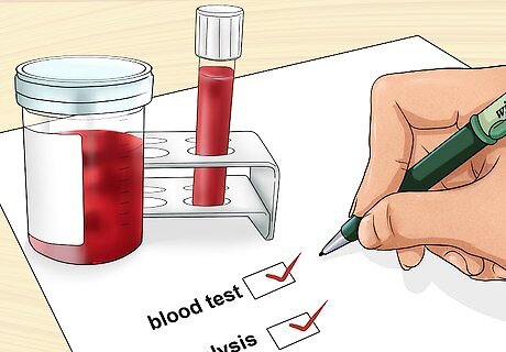 Undergo tests if necessary. Your doctor will want to run a few routine tests if your dehydration is severe. These tests can help identify potential underlying causes of dehydration. They can also help your doctor figure out the right treatment options for you. Dehydration can be related to electrolyte imbalances, diabetes, or kidney problems. Your doctor may want to run a blood test to check for these conditions. Determining an underlying cause for your dehydration will influence treatment. Your doctor may want to determine the level of your dehydration to recommend the right treatment option. In this case, you may need to provide a urine sample for urinalysis.