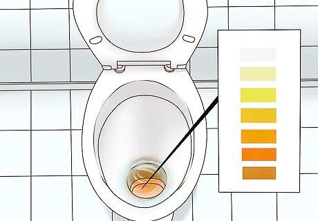 Monitor your urine color. Check the toilet bowl after you pee. Your urine color can be an indication of health. Urine should be pale, straw-colored, or light yellow. Darker urine may indicate dehydration. Urine that's somewhat dark yellow indicates you're mildly dehydrated and should drink some water soon. When urine becomes amber-colored or brown, this can indicate severe dehydration. You need to start drinking water right away and contact a doctor if the problem persists.