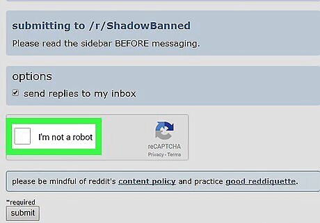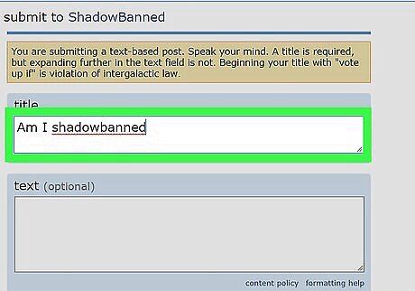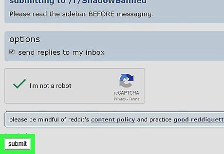 Click submit. Your post now appears in the subreddit. Now you’ll need to wait for someone to respond. If you are shadowbanned, nobody will be able to see your post, even though you can see it just fine. If someone responds to your post, you are not shadowbanned. Even if the user says “yes you are shadowbanned,” you aren’t shadowbanned—the user would not have been able to see your post if you were really shadowbanned. Try to be patient, as an actual human must respond to your post. If it’s been 48 hours and you still haven’t received a response, you are probably shadowbanned.
