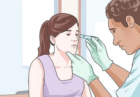 Get a physical exam. A physical exam will take place after screening your family and medical history to check for symptoms. Your doctor will be checking for evidence of dry skin, swelling around the eyes and legs, slow reflexes, and a slow heart rate.