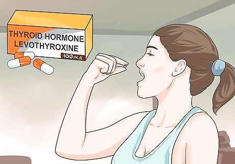 Take drugs. Standard treatment for hypothyroidism is an oral medication that restores your hormone levels to their proper levels. You will need to take the thyroid hormone levothyroxine on a daily basis to reverse the signs and symptoms of hypothyroidism. After starting treatment, you will have regular visits with your doctor to make sure you have the right dose of medicine. In most cases, your symptoms will begin to abate and you will gain some energy back two to six weeks after beginning treatment. Another benefit to this drug treatment is the lowering of cholesterol, which may reduce weight gained during the pregnancy. Infants and children with hypothyroidism should always be treated.