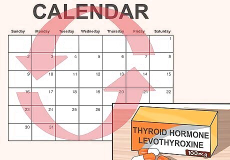 Think about the future. Be careful about which foods you eat and whether to take supplement or not with your medication. It is important that you continue to take your thyroid medication properly. If you are confused as to why you are taking it or the possible side effects, contact your doctor. Avoid taking iron and calcium supplements with your medication because they reduce the amount of thyroid hormone absorbed by the body. Calcium supplements, however, can be taken prior to or after four hours of taking medication. Foods such as walnuts, soybean flour, and cottonseed meal should also be avoided because they could interact with your medication and, therefore, reduce its overall effectiveness. If you take birth control pills or other hormone medication, talk to your doctor about adjusting the dose of your medicine. Many health food stores carry “natural” ingredient thyroid hormone supplements. These products are unregulated by the Food and Drug Administration. Therefore, be wary of the quality and effectiveness of these products. Some do have active ingredients that work, but can still be dangerous to certain people. Consult your doctor if you are interested in these supplements.