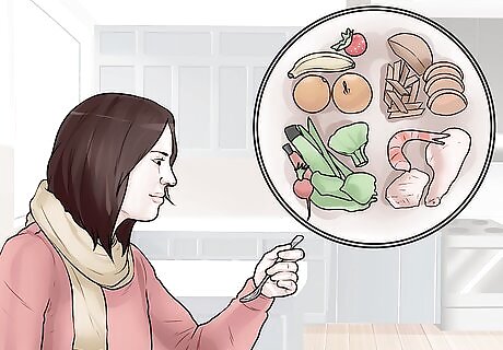 Eat a healthy diet. In addition to losing weight and cutting out excess calories from your diet, focus on a higher protein diet. This in combination with a reduced-calorie diet can help you see improved muscle tone. In addition, a healthy diet can help you lose some excess weight. If you have excess weight to lose, you might notice that you can't see all that much toning or definition in your arms. However, if you lose some extra weight, you'll be able to see better results. Protein is essential to the maintenance of muscle mass, but also to the synthesis of muscle. So make sure your diet is high in lean protein sources. Try lean protein sources like: poultry, lean beef, pork, seafood, shellfish, low-fat dairy products, eggs, tofu, nuts and legumes. Try to include at least 1 serving of protein at every meal. This will help ensure that you're eating enough. Measure out 3-4 oz or 1/2 cup of protein per serving.