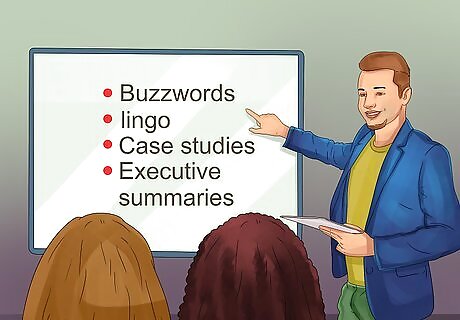 Develop useful materials to teach your sales team about the industry. Good training materials are brief. They provide models and definitions to help your sales team succeed in the industry. The team can refer back to these materials as they begin work. Some good training materials include: Buzzwords and lingo: New employees may not understand the lingo that both you and your customers may be using. Draw up a list of definitions for common terms and give it to the new team. Case studies: Provide specific stories about past sales that both worked well and failed. Use the case studies to instruct the new team on what does and doesn’t work in your industry. Executive summaries: Instead of bombarding your new sales team with several long documents, summarize the main points. Give them a synopsis of major clients, competitors, and vendors.