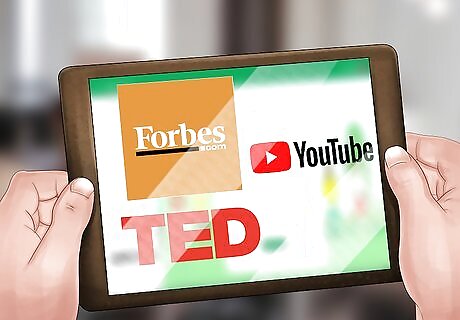 Recommend useful blogs and videos to your team. The internet contains tons of useful material about business, sales, and customer service. Stay up to date on both industry and market research blogs, videos, and podcasts. If you find a good article, send it out to your team and encourage them to use the advice. Forbes, Entrepreneur, and Inc. are good places to start for finance and business-related articles. TED Talks and YouTube may have useful lectures and videos for your team. Look at major business leaders and motivational speakers for inspiration. Read their book or watch their lectures online to find useful material.