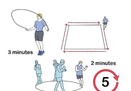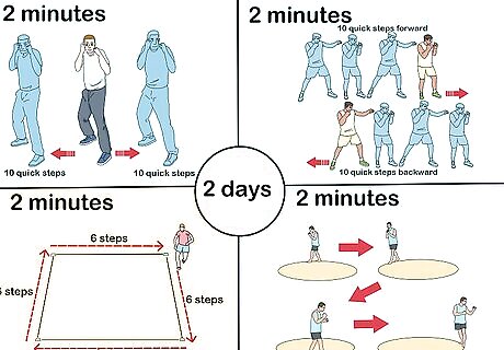 Do box drills. Combine left, right, forward, and backward steps to do a box drills. Move 6 steps forward, 6 steps right, 6 steps back, and 6 steps left. After 4 boxes, switch directions by moving back, left, forward, and right.