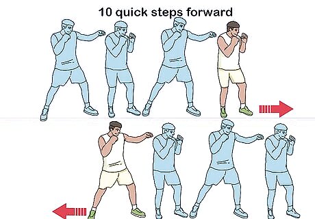 Do forward and backward drills. Start in your boxing stance and take 10 quick steps forward, then 10 steps back. Push off of your back foot when you step forward, and off your lead foot when you step back.