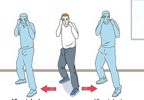 Perform side step drills. Start in your boxing stance, then take 10 quick shuffle steps to the left and 10 steps to the right. Push off your right foot when you step to the left, and off your left foot when you step to the right.