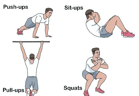 Include strength training in your routine. In addition to cardio, agility, and combination drills, include strength training workouts at least 2 days per week. Perform upper body, core, and lower body exercises, including push-ups, sit-ups, pull-ups, squats, lunges, and calf raises. Focus on 1 section of your body per day, such as upper body on Tuesdays and legs on Thursdays.