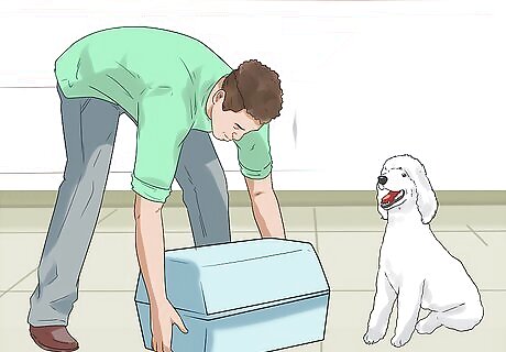 Purchase a crate. If your poodle is a puppy, it will be important to teach him how to stay in a crate. Choose a crate that will be large enough for him to stand up and move around in, but not so large that he can use a separate space to go to the bathroom. The crate should feel cozy to him, but not claustrophobic. A toy or miniature poodle’s crate should be 24 x 18 inches (61 x 46 cm) or 24 x 24 inches (61 x 61 cm). For a standard poodle, an ideal crate size is 48 x 36 inches (122 x 91 cm).