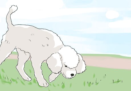 Allow your poodle to pick the exact bathroom spot. Although you should identify the general area where your poodle should go, allow him to pick the exact spot within that area. When you take him outside, let him sniff around and explore within the general area until he settles on a specific spot. After he picks the spot and relieves himself, take him to that specific area each time you take him outside.