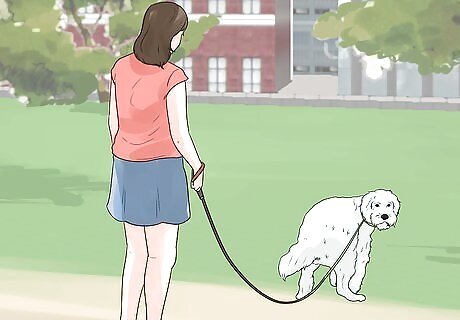 Wait for your poodle to eliminate. It may be tempting to give your poodle only a few minutes to go to the bathroom before you bring him in, especially if you are in a rush. However, rushing your Poodle when he is outside will not be very effective for house training—he may hold it so he can spend more time with you inside, increasing the chances of him having an accident. Ideally, you should give your poodle about 15 to 20 minutes outside.