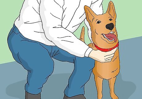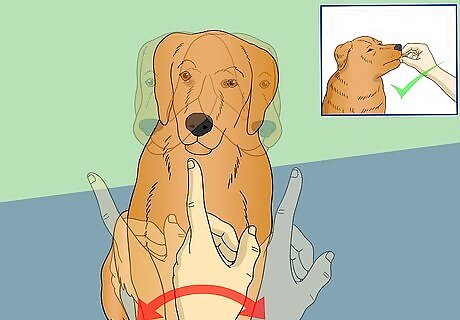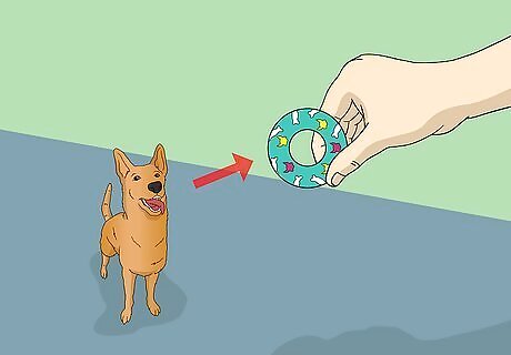 Get the dog's attention with a reward. Choose a specific reward that the dog enjoys, such as a ball, a plastic bone, or a smelly treat. Show the dog the reward at a time when the dog is attentive, but not overly excited. Command the dog to sit. If the dog is too energetic, it won't focus on the lesson. Tire it out a little before training, or choose a slightly less exciting reward. If your dog doesn't respond to "Sit," teach your dog that command before you teach it this one.