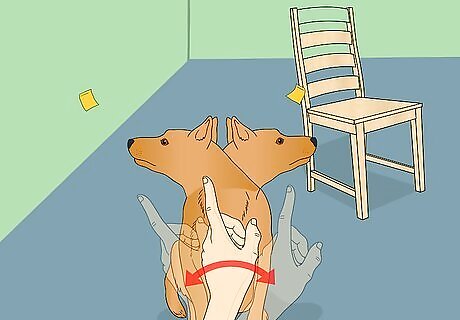 Stick two sticky notes at your dog's head height. Next, stick one sticky note to the wall at your dog’s head height. Stick a second to the back of a chair opposite, so the two sticky notes face each other. Get your dog to sit in the gap between the chair and the wall. Command the dog to touch one of the sticky notes, then click and deliver your reward at the other sticky note. After enough repetitions, the dog will touch one and then the other. You now have a complete head shake.
