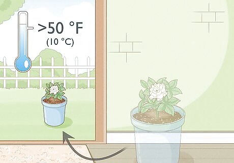 Wait until the temperature is above 50 °F (10 °C). While each type of flower has different needs, most flowers grow and thrive best in temperatures over 50 °F (10 °C). If you’re wanting to move your flowers from inside your home to outside, wait for the weather to warm up first to ensure that your flowers will adjust well. Make sure to move your flowers back inside once the weather cools down again.