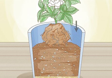 Place the root ball in the pot. Set the root ball on top of the soil-free potting mix. Make sure that the plant is sitting centered and straight inside of the pot.