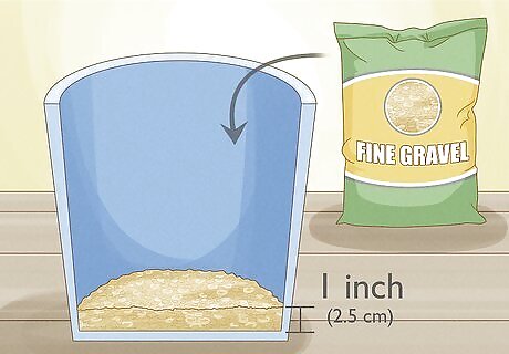Put a 1 inch (2.5 cm) layer of fine gravel in the bottom of the pot. Fine gravel, horticulture charcoal, and clay pot shards typically keep water from collecting in the bottom of potted plants. Spread any 1 of these out in an even layer.