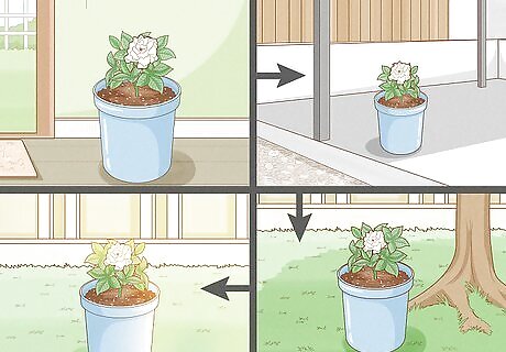 Place your pot in the shade until the next day. Set your pot somewhere outside in a well-shaded area. It may take your flowers 1-2 days to adjust, so keep them in this location during this time. After a day or so, you can move them to a location that has a little more sun. After a few more days, your flowers should be able to handle being placed somewhere that gets full sun.