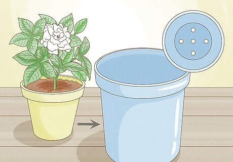 Choose a large flower pot with drainage holes. Large pots are better at providing insulation for your flowers’ roots and can also hold more water than smaller ones. Drainage holes are necessary for preventing root rot. Try to find a pot that has all of these qualities. Keep the container size in mind while picking out a flower pot. While you want your pot to be bigger than your container, you don’t want it to be so big that the flowers look small in the pot.