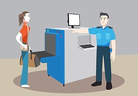 Put your luggage and belongings through an x-ray machine. Send any luggage through the x-ray machine past the guard. There are restrictions on how much uncanned meat, food, and dairy you can bring into the country. You must have a license for your firearm if you plan to bring it into the country. The restrictions vary year by year and you may have to ask the border patrol guard if you can bring a certain food item in with you.