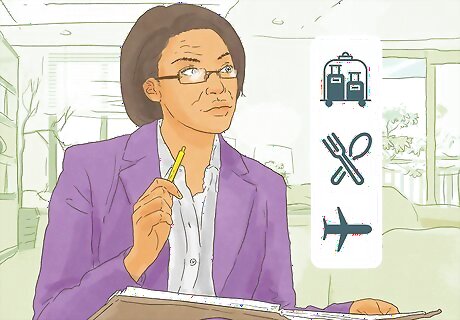 Book your reservations. After drafting an initial budget, you’ll need to book your reservations. Booking your reservations should be relatively easy since you already researched what you want to book. Use whatever service or company quoted you the lowest price when you compared prices. Booking in advance is important, as prices may rise the closer you get to the day you need to travel or use lodging.