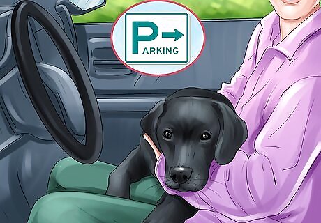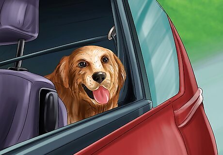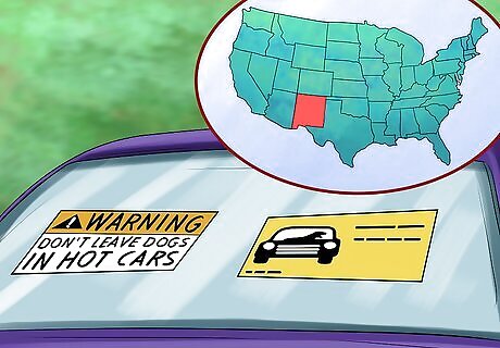 Stay with your dog in a parked car. It is very dangerous to leave your dog in an unattended vehicle, especially when the weather is warm. Many states have "hot car" laws that make it a crime to leave a dog in a car alone. Some states even allow citizens to break into cars when they see pets locked inside during summer heat. Always stay with your dog if you’re going to park the car, or bring the dog with you. Keep in mind that when it is 85 degrees Fahrenheit (29 Celsius) outside, it can rise to 120 degrees Fahrenheit (49 Celsius) inside a closed-up car within 30 minutes. That is enough time to kill a dog. This is true even with a window cracked. Just don’t leave your pets in the car.