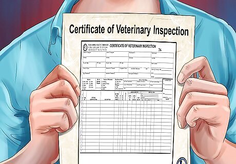 Get a veterinary inspection certificate. In order to cross most state lines with your dog, you must have what is called a Certificate of Veterinary Inspection (CVI). This certificate ensures that your dog doesn’t have any diseases that can be spread to other animals. There are a few states that don’t require a CVI for dogs: California, Georgia (unless the dog is for sale), Main (unless being transferred to a new owner), Montana (unless transferring ownership), Texas (unless the dog arrives by air), Washington State (unless the pet is being commercially imported). A CVI states that a veterinarian has not observed any symptoms of contagious disease. It only lasts for 30 days.