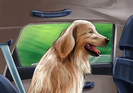 Have your dog ride inside the vehicle. It is dangerous to let your dog ride in the back of a truck or otherwise stick heads or body parts outside of a moving vehicle. Dogs do not foresee danger like humans do, and debris along the road can easily injure your dog. Keep the windows rolled up to reduce risk of injury to your dog.