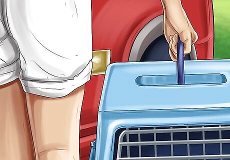 Reserve the front seat for humans. Even if you decide to leave your dog out of a crate inside the vehicle, make sure they stay out of the front seats. This is because of the airbag situation. If an airbag deploys on your dog, it will likely injure them. If you do keep your dog loose in the car, make sure to buckle them in. Put your dog in a specially designed safety harness, which allows you to buckle the seat belt directly into the harness.