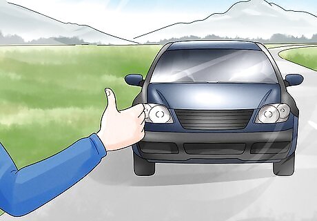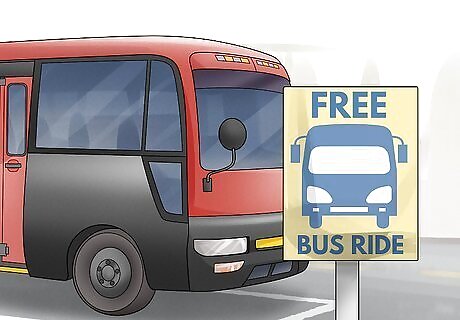 Try hitchhiking. Hitchhiking has been done for hundreds of years, and can allow you to travel short distances for free while being able to chat with and get to know people. This form of travel should really be considered on a country or region specific basis because in some places it's safe while in others, it's downright dangerous. For example, hitchhiking in France is relatively easy and safe. However, in some countries you should not even consider it, especially if you are a female and or are travelling alone. Use your intuition. This is extremely important when deciding whether or not to accept rides from strangers. If you feel at all uncomfortable at all, pass on the ride. One great tip is to ask them where they are going first, before you divulge your destination. This allows you to quickly assess the person and decide whether to accept before jumping in. Where hitchhiking is illegal, find out how rigorously it is enforced. A free night in jail might not be your idea of fun travel.