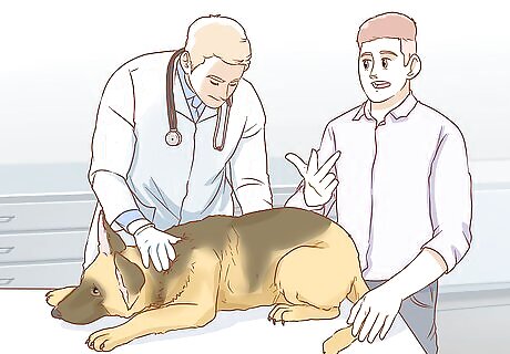 Know the symptoms of snakebite in dogs. Dogs with snakebite will start to display symptoms within 1-24 hours. In the majority of cases, the dog will either vomit or become very weak shortly after being bitten. The dog may start to stagger and eventually collapse, have dilated pupils, have rapid and shallow breathing, start trembling, or begin to drool. These are just some common symptoms of snakebite in dogs and this list is not exhaustive. The symptoms of snakebite depend on the snake venom. If your dog is displaying any unusual or worrisome behavior, take it to your veterinarian to get checked. Take your dog to the veterinarian even if you aren’t fully sure that it has snakebite, just to be on the safe side.