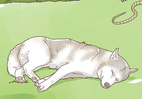 Avoid walking your dog in bushland, on dunes, or near water. Snakes often live near water and in locations where there are plenty of places to hide. This is why snakebite occurs more frequently in these areas. Stick to walking your dog on open, well-defined paths and stay away from high grass and rocks where snakes can hide. Don’t let your dog sniff any dead snakes, as the fangs can still be venomous.