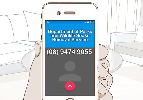Contact the Department of Parks and Wildlife Snake Removal Service if needed. The Australian Government provides a free service that will remove snakes for you, due to both the dangerous nature of the task and to protect the snakes. If you need to get a snake on your property removed, call this service on (08) 9474 9055.