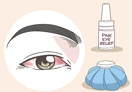 Use eye drops and cold compresses to relieve pinkeye. Pinkeye, or conjunctivitis, is another potential presentation of adenovirus. If you experience red, swollen, and itchy eyes, you can relieve them with OTC eye drops from the pharmacy. Avoid using eye drops that have preservatives since that can cause more eye irritation. You can also press a cold, wet towel onto your eyes to relieve the itching and swelling. There are bacterial forms of pinkeye as well that usually last longer than 7–10 days and have more eye drainage, but these are treated with antibiotics. Pinkeye from adenovirus, however, won’t respond to antibiotics. Visit your eye doctor if you have any trouble seeing.