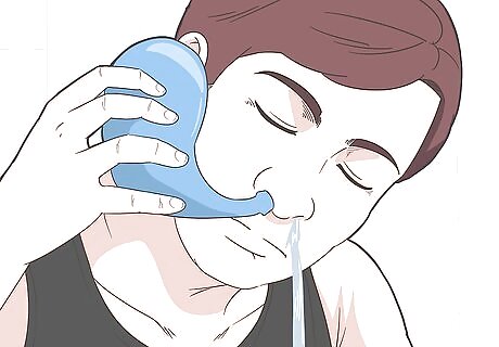 Try a saline nasal rinse if you’re experiencing postnasal drip or cough. Buy a saline solution from your local pharmacy and put it inside a syringe, squeeze bottle or Neti pot. Insert the tip into your nostril and slowly pour the solution toward the back of your head. The solution will go through your nasal cavity and drain out from your other nostril or through your mouth. Gently blow your nose after using the solution. Repeat the process twice daily to help get more relief.