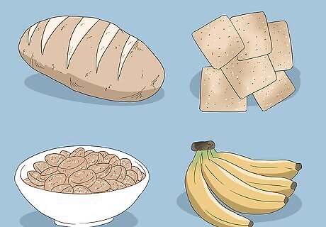 Eat bland foods if you’re experiencing nausea and vomiting. Sometimes the adenovirus presents as stomach flu. In this case, stick with plain food like bread, crackers, or dry cereal. This can control your nausea while providing you with necessary nutrients to fight the infection. Avoid dairy, sweets, and other heavy foods if you’re feeling nauseous. Diarrhea may also occur. Bland foods, such as bananas, crackers, applesauce, and toast, can help relieve this as well.