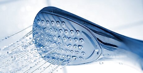 Rinse your hair with cool water. When you’re rinsing your hair after washing it, don’t use hot water. The heat can actually dry out your hair, leaving it even more brittle and dehydrated. Instead, use cool water to rinse the shampoo or cleansing conditioner from your hair. For the final rinse of your hair, it’s a good idea to use cold water. Not only does it seal the cuticle and lock the moisture in, but it leaves your hair looking shinier too.