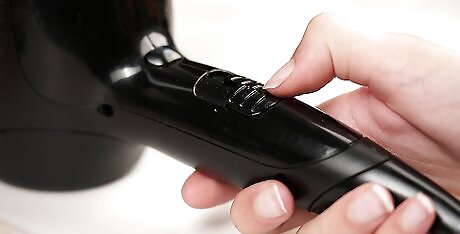Limit heat styling. Using heated styling tools, such as a curling iron or flat iron, can dry out your hair further. It’s best to limit your use of heat styling to once a week. Blow drying your hair can also cause moisture loss in your hair, so air dry your locks whenever possible. When you do heat style your hair, always apply a heat protectant product. It coats your hair with extra moisture so your hair doesn’t lose any of its natural moisture when it’s heated. Use a heat protectant spray if you have fine or thin hair. Use a heat protectant lotion or cream if you have thick or curly hair. When you use a curling iron, flat iron, or blow dryer, use the lowest heat setting possible to achieve your desired results. Low to medium heat is the best option.