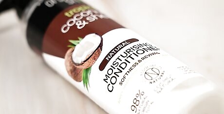 Use a cleansing conditioner instead of shampoo. Traditional shampoos contain sulfates and other chemicals that dry out your hair. Instead of washing with shampoo, use a cleansing conditioner, which uses natural oils to cleanse and condition at the same time. They leave your hair feeling clean and moisturized. Make sure that your hair is completely saturated with water before you apply the cleansing conditioner. When you’re using a cleansing conditioner, apply it from the roots to the ends. While a cleansing conditioner can keep your hair clean, you can still get buildup from styling products, deep conditioning treatments, and sweat. To get rid of it, use a clarifying shampoo every two to four weeks instead of the cleansing conditioner. If you don't want to use a cleansing conditioner, opt for a sulfate-free, natural shampoo. Look for a formula that contains ingredients such as argan oil, almond oil, coconut milk, honey, aloe vera, shea butter, and other organic naturals that won't strip your hair of moisture.