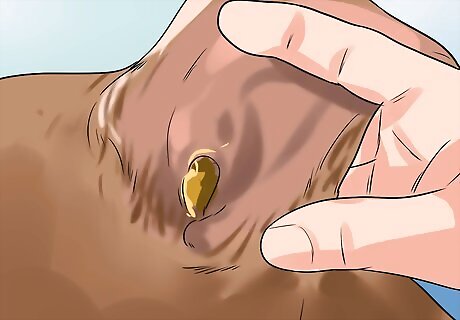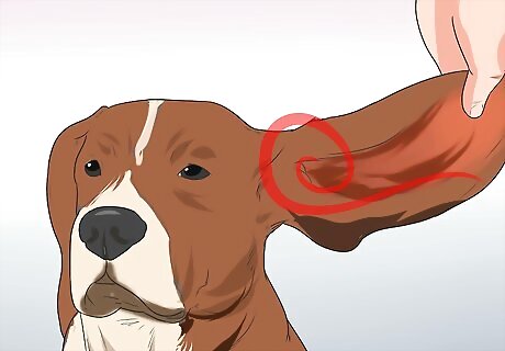 Observe your beagle’s behavior. Your beagle won’t be able to hide his ear infection. He will scratch and paw at his ears, and shake his head. In addition, he might rub his ears on nearby objects to relieve the itch. If the ear infection is really bothersome, your beagle may shake his head so much that a large blood clot, called a hematoma, forms in his ear. Your beagle may feel so miserable that he becomes withdrawn. If you try to touch your beagle’s ears, he may cry out or whine. He may even become aggressive because of how sensitive and painful his ears feel.