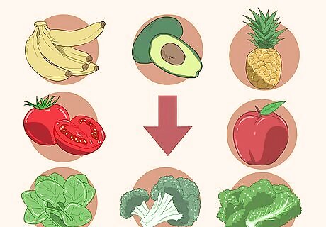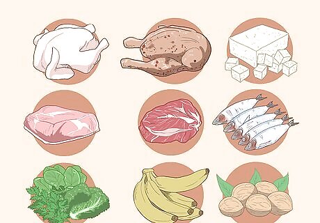 Build your diet around fresh fruits and veggies to nourish your body. Vitamins and minerals support a healthy immune system, as well as your energy levels. Fresh fruits and veggies help you get the nutrients you need, so eat them at meals and snacks. Eat a serving of lean protein at each meal. This includes chicken, turkey, fish, tofu, nuts, beans, and meat replacements.