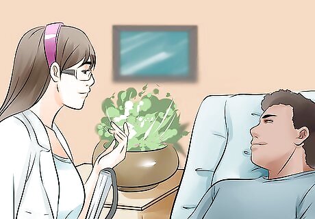 Try light therapy. Light therapy, or exposing yourself to sunlight or light that mimics sunlight, can positively effect on your mood. Some research suggests that increased amounts of sunlight will increase your body’s levels of vitamin D. Try a dawn simulator. This is a timer mechanism that you attach to a lamp in your bedroom. The lamp will start to light up gradually 30-45 minutes before your scheduled wake-up time. Your brain will think that morning light is coming through the window and you may trick your body into feeling better. Get a light therapy box or lamp. This device emits simulated sunlight. Sit in front of a light therapy box for 30 minutes per day to get more light exposure.