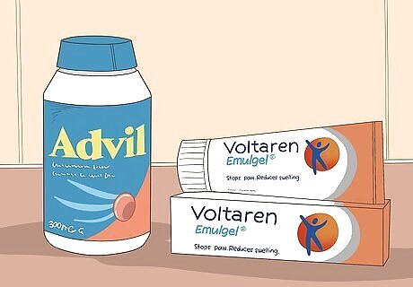 Use non-prescription anti-inflammatory drugs when needed. Non-steroidal anti-inflammatory drugs, also known as NSAIDs, include a variety of brand name medications you’re likely already familiar with, such as Advil, Aspirin, Emulgel, Motrin, and Voltaren. Some, like Advil and Motrin, are in pill form and are taken internally, while others, like Emulgel and Voltaren, are creams or gels and are used topically, directly on the location of your pain. Be sure to talk to your doctor or pharmacist about which NSAIDs can and cannot be used in combination with your prescription medications and with other medical conditions you may have.